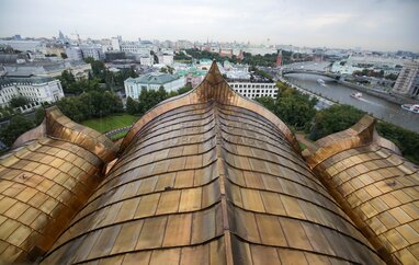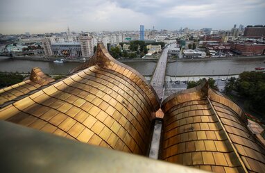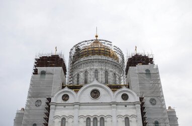 Реставрация куполов четырех звонниц храма Христа Спасителя в центре столицы.