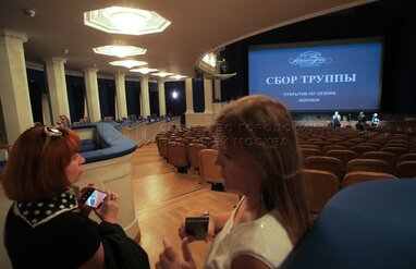 Пресс-конференция и традиционный сбор труппы в Московском академическом музыкальном театре имени Станиславского и Немировича-Данченко в преддверии нового, 107-го сезона.