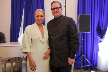 Управляющий партнер девелоперской компании VOS'HOD Марина Руднева и генеральный директор МАМТ Андрей Борисов. Традиционный сбор труппы в Московском академическом музыкальном театре имени Станиславского и Немировича-Данченко в преддверии нового, 107-го сезона.