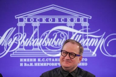 Генеральный директор МАМТ Андрей Борисов. Пресс-конференция в Московском академическом музыкальном театре имени Станиславского и Немировича-Данченко (МАМТ) в преддверии нового, 107-го сезона.