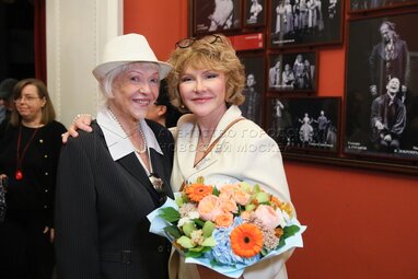 Заслуженная артистка РФ, актриса Элеонора Шашкова (слева) и народная артистка РФ, актриса Марина Есипенко. Открытие 105-го сезона Театра имени Вахтангова.