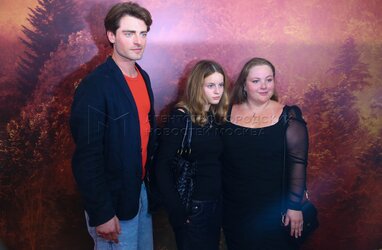 Актер Никита Кологривый, его супруга актриса Александрина Питиримова и дочь Есения. Премьера фильма «Август» в кинотеатре «Октябрь».