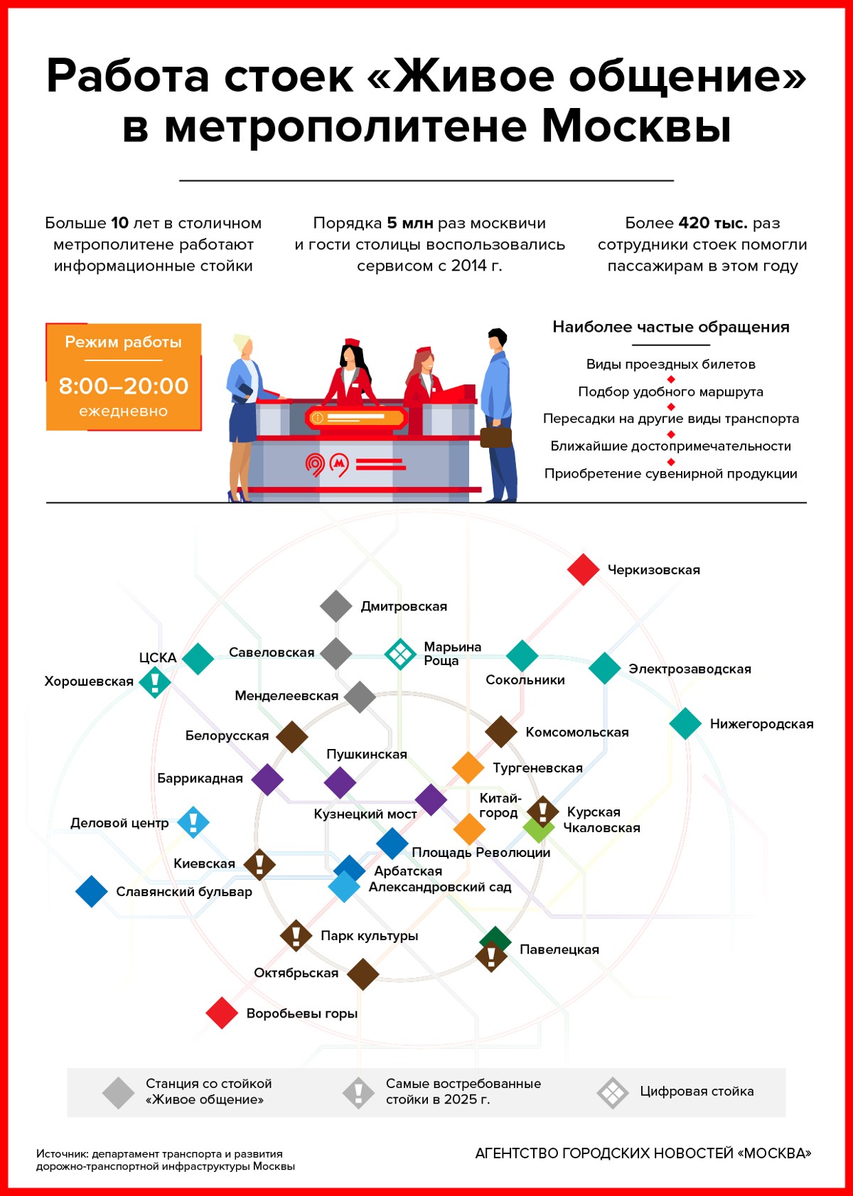 Работа стоек «Живое общение» в метрополитене Москвы.