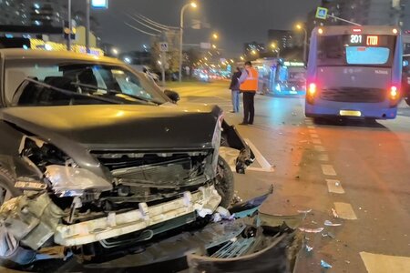 «Сегодня около 18:28 на ул. Краснодарская у д. 58Г произошло ДТП с участием двух автомобилей и автобуса 201 маршрута. По предварительной информации, водитель автомобиля не справился с управлением и допустил столкновение с другим автомобилем, который задел проезжавший мимо автобус», – говорится в сообщении.