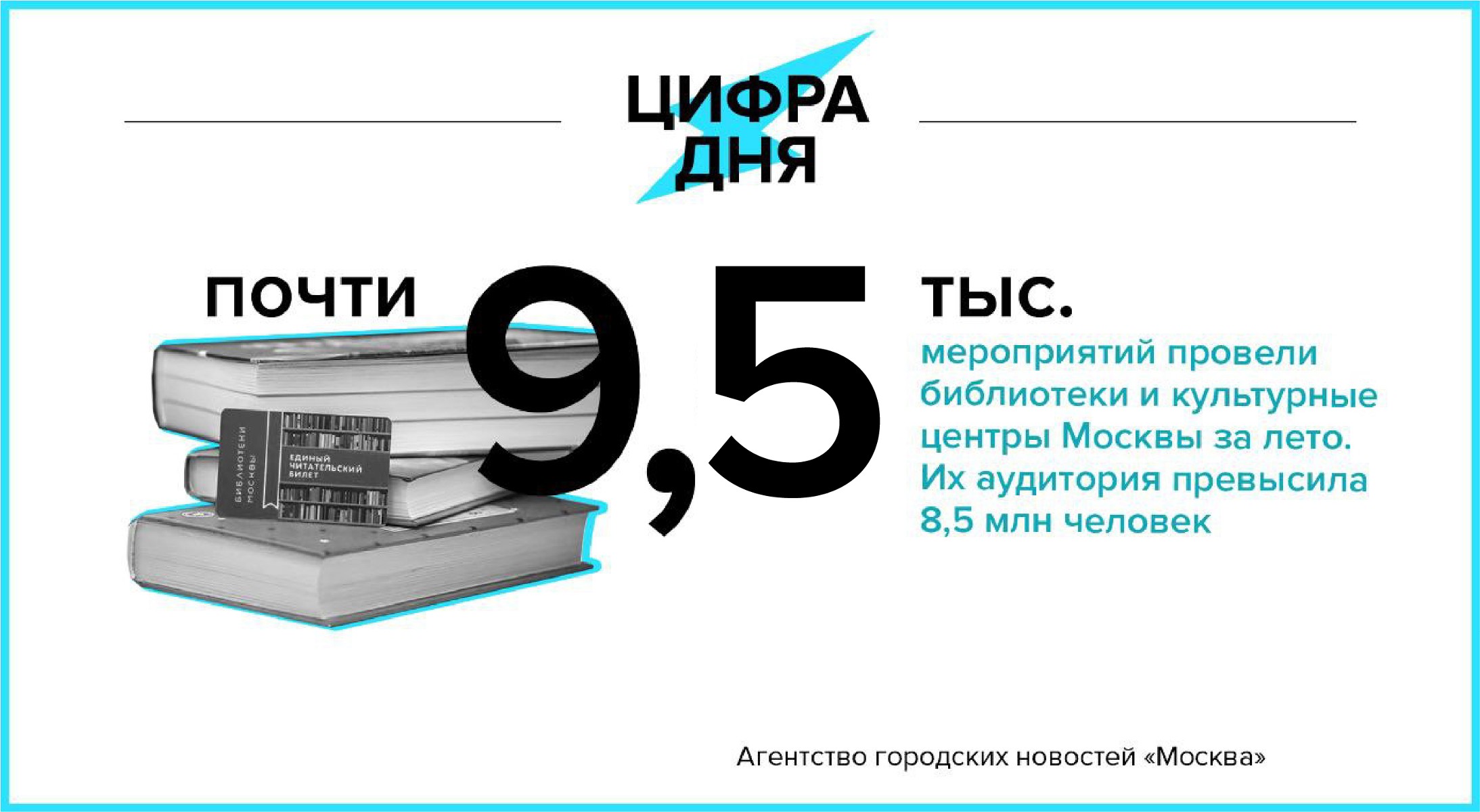 Цифра дня 11 октября: Почти 9,5 тыс. мероприятий провели библиотеки и культурные центры Москвы за лето.