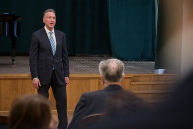 И.о. ректора Московской консерватории Александр Соколов на церемонии открытия барельефа народной артистки СССР Бэлы Руденко в Московской государственной консерватории имени Чайковского.