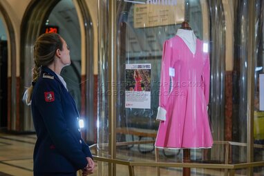 Показ платья героини фильма «Алиса в Стране чудес» на станции метро «Маяковская».
