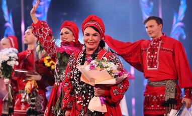 Певица Надежда Бабкина (в центре). Концерт «Страна талантов» в Москве в честь 50-летия ансамбля «Русская песня» в Московском государственном академическом театре «Русская песня».