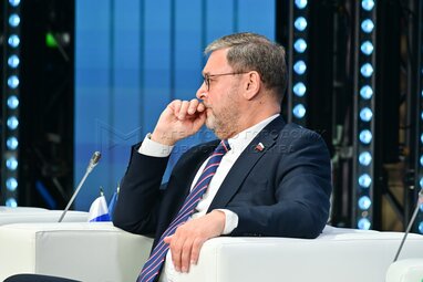 Чрезвычайный и полномочный посол Республики Беларусь в РФ Александр Рогожник во время пленарного заседания «Народы России и СНГ: оберегая ценности, стремиться в будущее» в рамках Международного фестиваля «Народы России и СНГ» в Центре международной торговли.