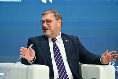 Вице-спикер Совета Федерации РФ Константин Косачев во время пленарного заседания «Народы России и СНГ: оберегая ценности, стремиться в будущее» в рамках Международного фестиваля «Народы России и СНГ» в Центре международной торговли.