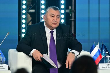 Государственный секретарь Киргизии Марат Иманкулов, секретарь Совета безопасности РФ, президент Русского географического общества Сергей Шойгу и руководитель Федерального агентства по делам национальностей Игорь Баринов (слева направо) во время пленарного заседания «Народы России и СНГ: оберегая ценности, стремиться в будущее» в рамках Международного фестиваля «Народы России и СНГ» в Центре международной торговли.