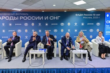 Пленарное заседание «Народы России и СНГ: оберегая ценности, стремиться в будущее» в рамках Международного фестиваля «Народы России и СНГ» в Центре международной торговли.