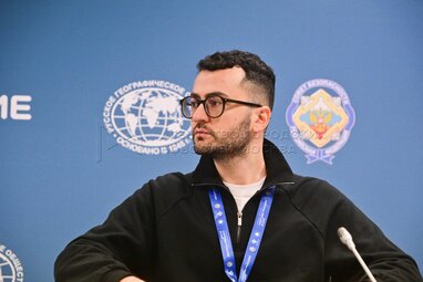 Начальник управления информационных проектов АНО «Диалог» Семен Баданин во время секции «Актуальные тенденции информационного противодействия. Межнациональный фактор» в рамках Международного фестиваля «Народы России и СНГ» в Центре международной торговли.
