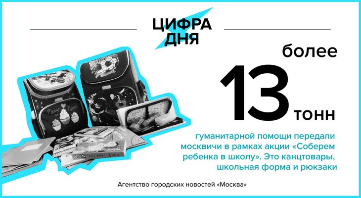 Цифра дня 2 ноября: Более 13 тонн гуманитарной помощи передали москвичи в рамках акции «Соберем ребенка в школу».
