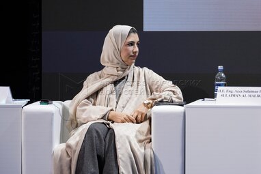 Основатель и генеральный директор Direction CSR, сертифицированный тренер в области человеческого развития, почетный президент волонтерской команды «Послы счастья» – Азза Сулейман Бин Сулейман Аль Малик во время деловой сессии «Инвестиции в эмоции: как меняется маркетинговая карта мира и при чем здесь наука» в рамках Международного научно-туристического форума «Открой атом» в музее «Атом» на ВДНХ.