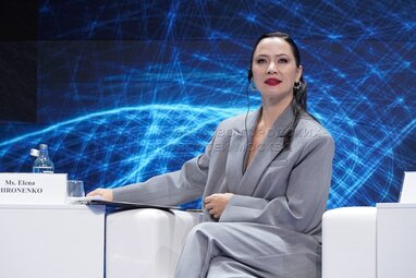 Ректор Камчатского государственного университета имени Витуса Беринга – Ольга Ребковец во время сессии «Как создать креативные коллаборации и эффективные партнерства в сфере научного-популярного туризма» в рамках Международного научно-туристического форума «Открой атом» в музее «Атом» на ВДНХ.