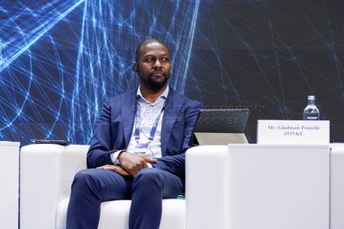 Генеральный директор группы музеев Iziko (Кейптаун, ЮАР) – Леннокс Собале Туквайо во время пленарного заседания «Музеи будущего: здесь наука пишет историю завтрашнего дня» в рамках Международного научно-туристического форума «Открой атом» в музее «Атом» на ВДНХ.