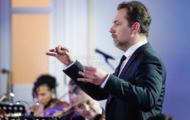 Дирижер Николай Хондзинский перед концертом Московского фестивального оркестра в Доме Пашкова в рамках акции «Ночь искусств».