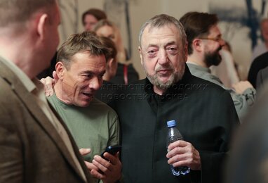Актер Олег Васильков (слева) и режиссер Павел Лунгин. Премьера фильма продюсера и режиссера Сергея Члиянца «Ветер» в кинотеатре «Художественный».
