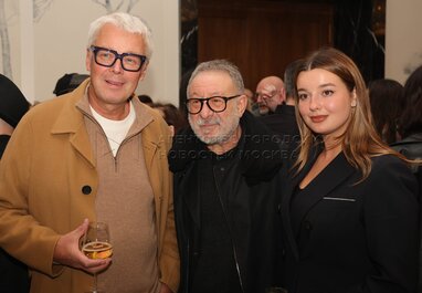 Актер Александр Стриженов, музыкант Евгений Маргулис и Александра Стриженова (слева направо). Премьера фильма продюсера и режиссера Сергея Члиянца «Ветер» в кинотеатре «Художественный».