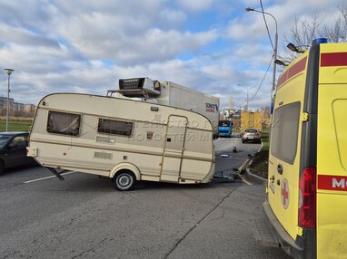Последствия ДТП с участием неуправляемого грузовика и прицепа-автодома на юге Москвы