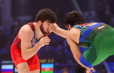 Вольная борьба: Заур Угуев (Россия) – Нураддин Новрузов (Азербайджан). Международные соревнования «Кубок сильнейших спортсменов» по спортивной борьбе на волейбольной арене «Динамо».