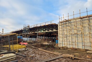 Строительство финального участка автомагистрали «Солнцево – Бутово – Варшавское шоссе». В рамках работ через ж/д пути МЦД-2 возводится автомобильный путепровод, который свяжет улично-дорожную сеть вблизи улицы Поляны с Варшавским шоссе.