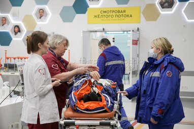 Автомобиль скорой помощи в приемном отделении. Внедрение системы идентификации пациентов по QR-кодам в стационарных отделениях городских больниц.