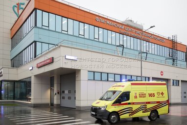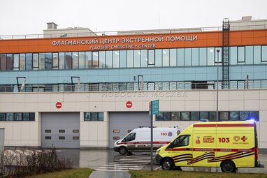 Автомобили скорой помощи возле приемного отделения Флагманского центра экстренной помощи. Внедрение системы идентификации пациентов по QR-кодам в стационарных отделениях городских больниц.