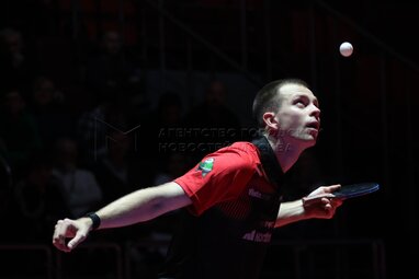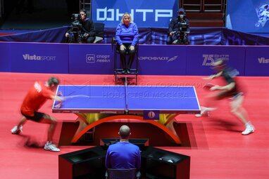 Матч Сидоренко Владимир − Макаров Владислав во время соревнований по настольному теннису на Суперкубке России в Лужниках.