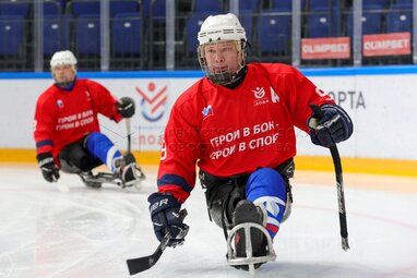 Открытый товарищеский матч по следж-хоккею между московской командой «Мужество» и петербургской командой «Звезда», частично или полностью сформированными из ветеранов специальной военной операции.