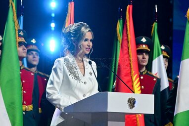 Официальный представитель Министерства иностранных дел России Мария Захарова на юбилейном X Международном Кремлевском благотворительном кадетском балу в Гостином дворе.