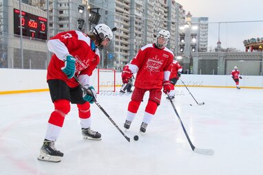 Благотворительный хоккейный матч в рамках фестиваля «Путешествие в Рождество» и проекта «Зима в Москве» на катке фестивальной площадки «Московские сезоны» в Южном Медведково.