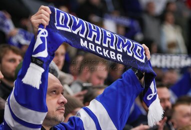 Болельщики «Динамо» на матче регулярного чемпионата Континентальной хоккейной лиги (КХЛ) между московскими клубами «Динамо» и «Спартак» на стадионе «ВТБ Арена».