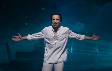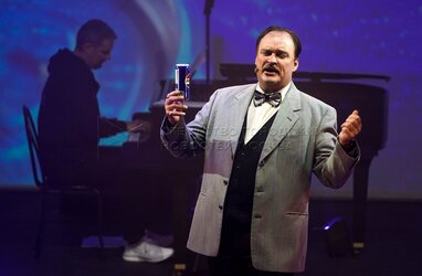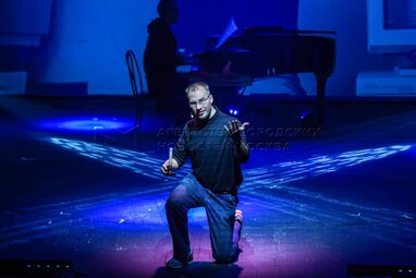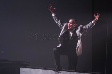 Денис Юченков в роли Скалли на премьерном показе музыкального спектакля Марка Розовского «Джобс» о жизни одного из основателей компании Apple Стива Джобса в Московском государственном театре «У Никитских ворот».