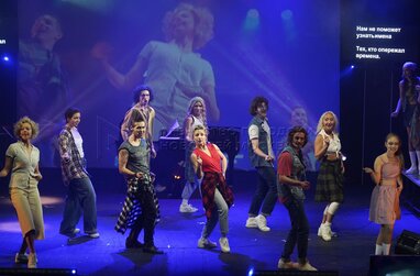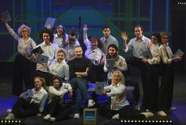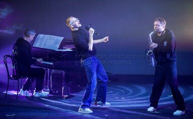 Премьерный показ музыкального спектакля Марка Розовского «Джобс» о жизни одного из основателей компании Apple Стива Джобса в Московском государственном театре «У Никитских ворот».
