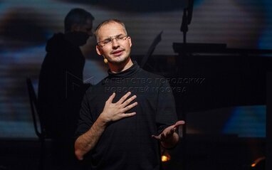 Художественный руководитель театра «У Никитских ворот» Марк Розовский на пресс-конференции перед показом премьерного музыкального спектакля «Джобс» о жизни одного из основателей компании Apple Стива Джобса в Московском государственном театре «У Никитских ворот».