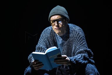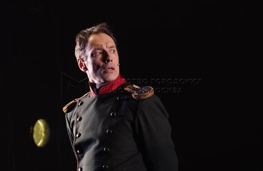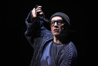 Андрей Финягин (Человек, которого принимают за Печорина) на показе спектакля «Герой нашего времени?» в постановке режиссера Антона Яковлева перед премьерой в Московском драматическом театре имени Гоголя.