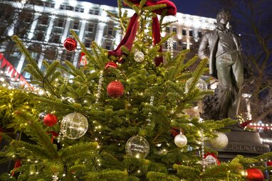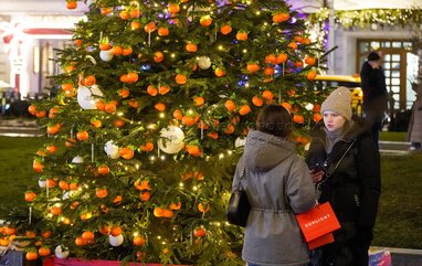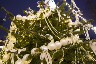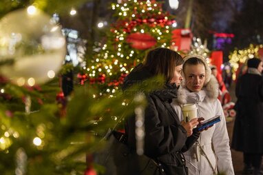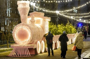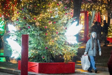 Открытие выставки eлок, созданных российскими бьюти-брендами в рамках фестиваля «Путешествие в Рождество», на Тверском бульваре.