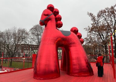 Установленный на Болотной площади 6-метровый надувной красный конь, символизирующий наступающий год Красной Огненной Лошади.