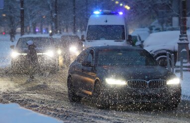 Снегопад в столице 30 декабря 2025 года. Автомобильное движение у парка Победы на Поклонной горе.