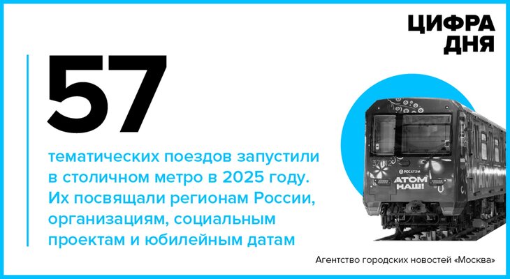 Цифра дня 15 января: 57 тематических поездов запустили в столичном метро в 2025 году.