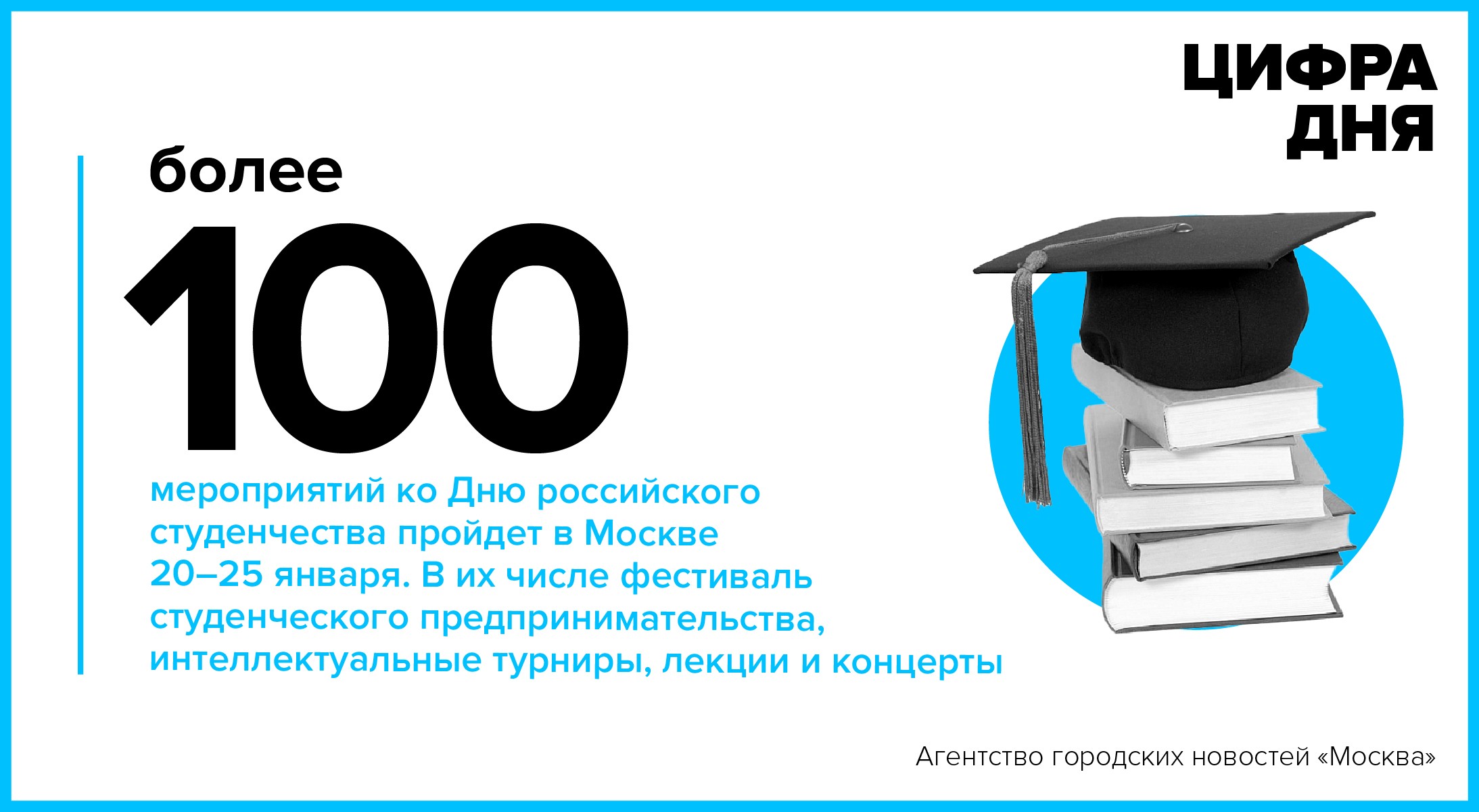 Цифра дня 19 января: Более 100 мероприятий ко Дню российского студенчества пройдет в Москве 20–25 января.