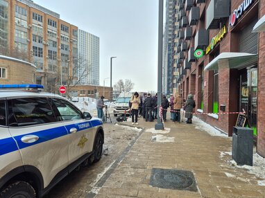 Оперативные службы у дома на Волоколамском шоссе, где произошло покушение на генерал-лейтенанта Минобороны РФ Владимира Алексеева.