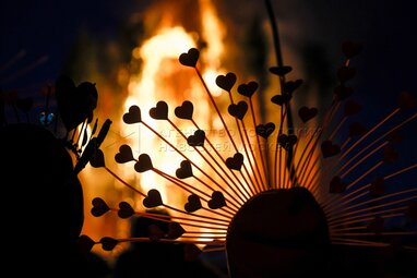 Основатель арт-парка «Никола-Ленивец», художник Николай Полисский во время масштабных перформансов празднования Масленицы.