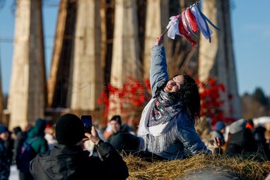 Празднование Масленицы в арт-парке «Никола-Ленивец» в Калужской области.