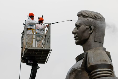 Промывка памятника Юрию Гагарину в рамках «Недели космоса»