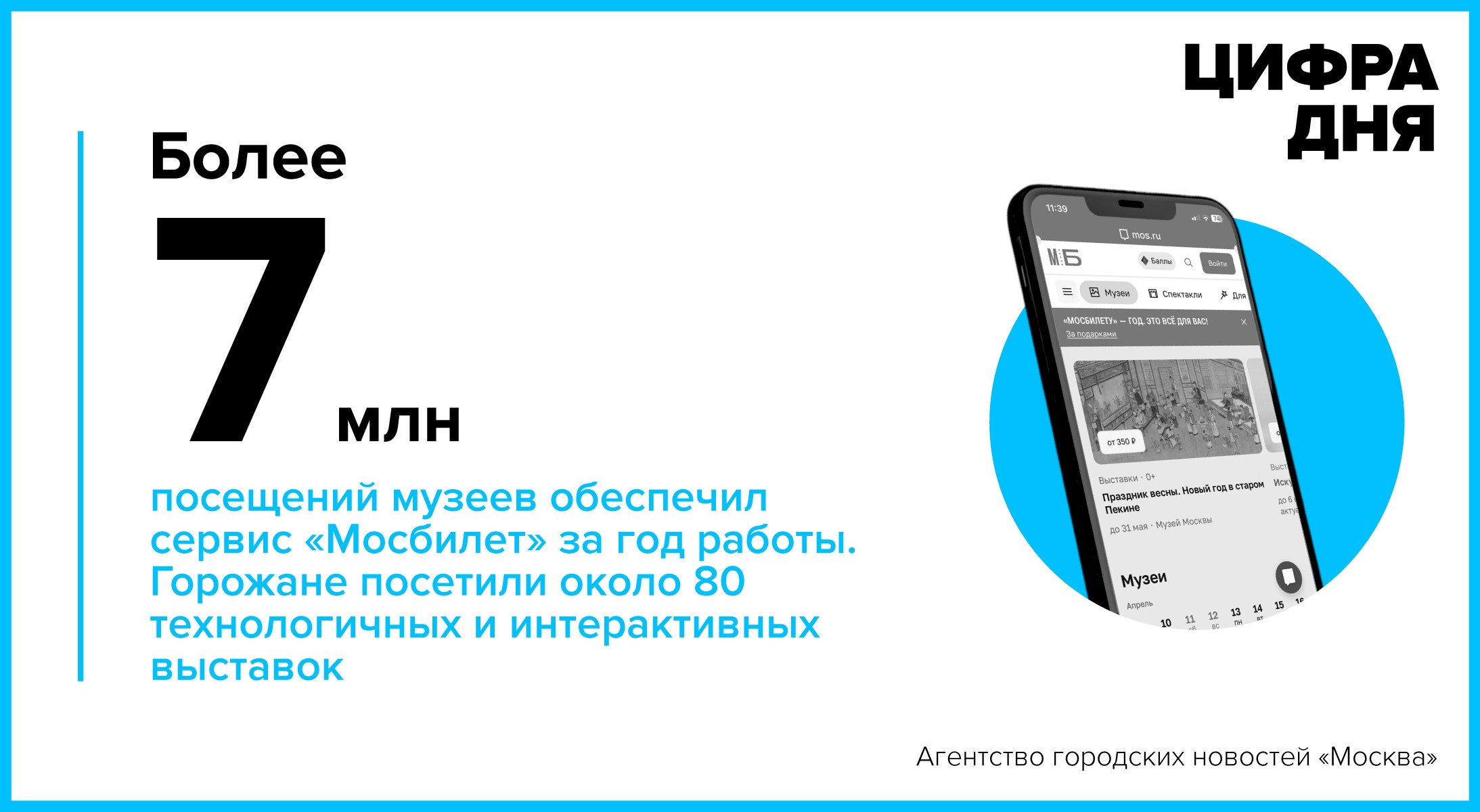 Цифра дня 10 апреля: Более 7 млн посещений музеев обеспечил сервис «Мосбилет» за год работы.