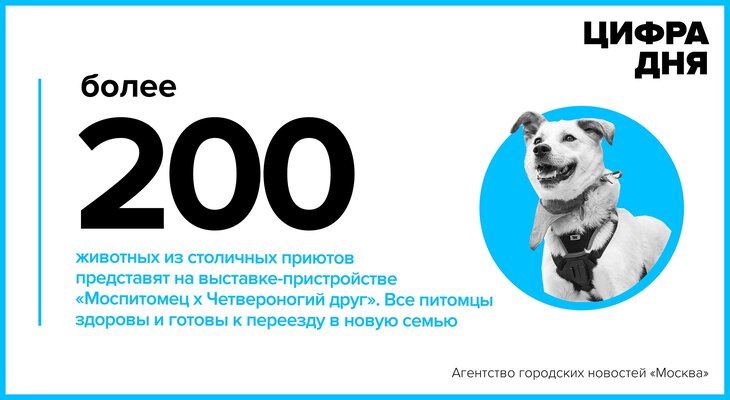Цифра дня 14 апреля: Более 200 животных из столичных приютов представят на выставке-пристройстве «Моспитомец х Четвероногий друг».