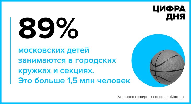 Цифра дня 16 апреля: 89% московских детей занимаются в городских кружках и секциях.